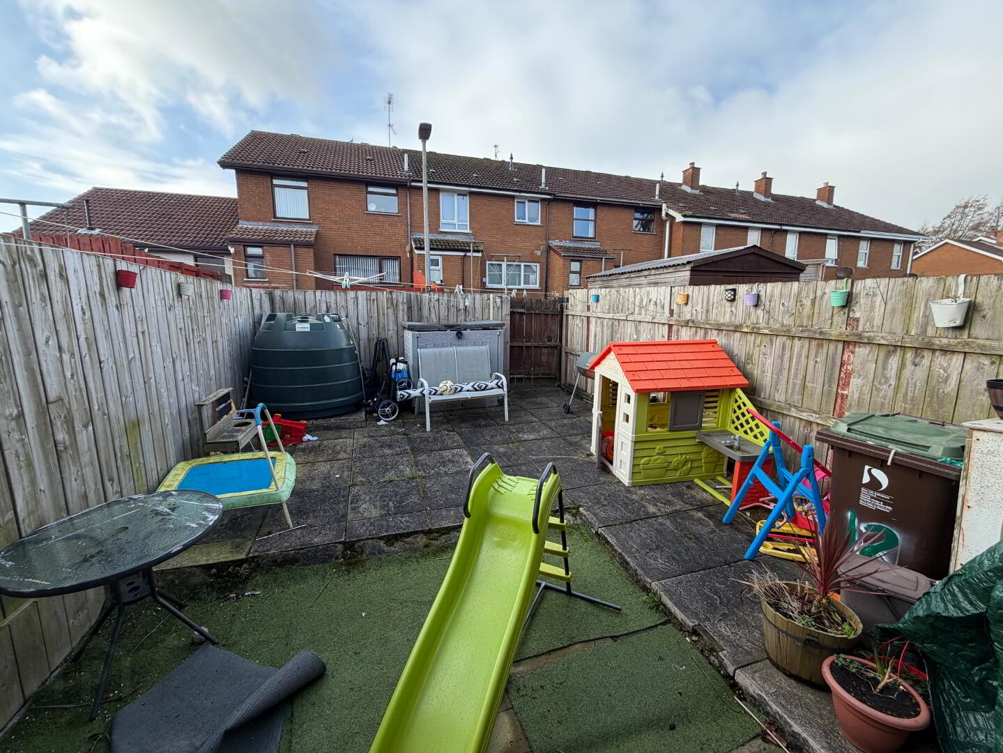 Concrete yard to rear enclosed by fence.