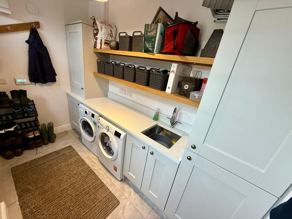 Utility Room 10'6 x 5'7 Low level units, Single drainer stainless steel sink unit with mixer tap, plumbed for washing machine, space for tumble dryer, tiled floor.
